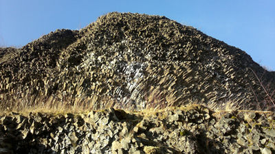 Gall: Der Parkstein! Schau dir diese mustergültig ausgebildeten Säulenformationen an – dürften 38 Meter hoch sein, und diese toll aufgeschlossene Schlot-Breccie!